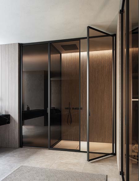 The new minimal and hinged door shower enclosure by VismaraVetro LINK